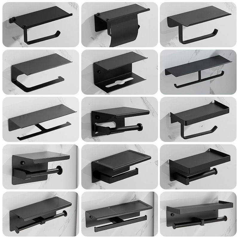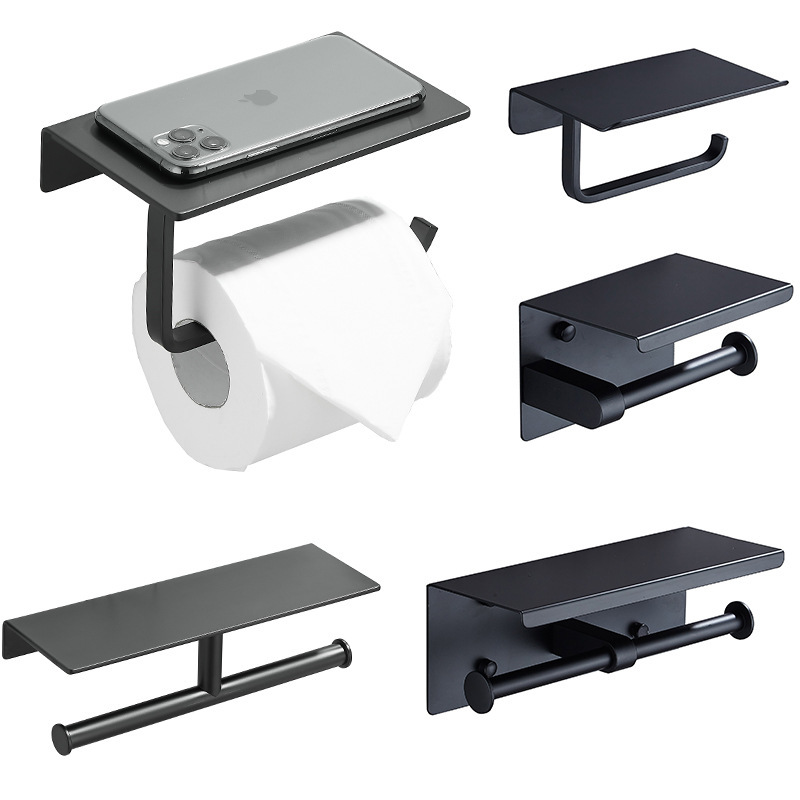 免打孔不锈钢纸巾架黑色托盘手机置物架卫生间厕纸卷纸挂钩纸巾钩