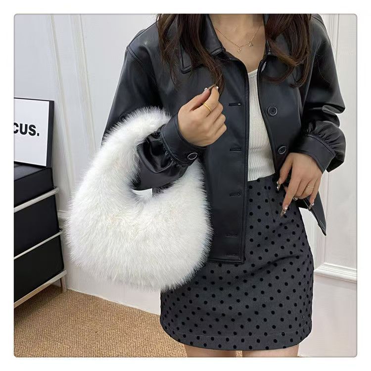 跨境芙拉风简约女包2025秋冬新款百搭毛绒手提包网红女士小拎包