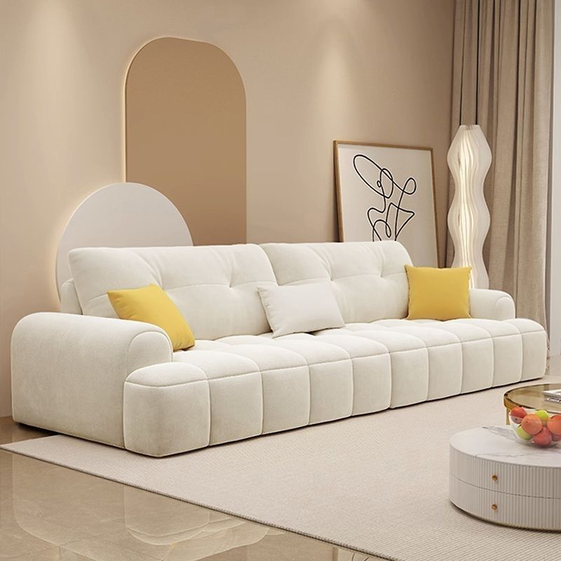 奶油风泡芙布艺沙发直排小户型客厅猫爪简约现代牛奶绒网红沙发
