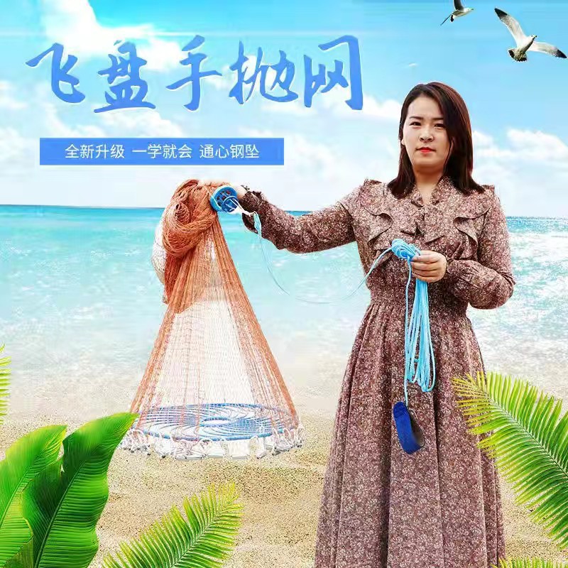 批发渔网撒网美式飞盘手抛网撒网抛网手撒鱼网捕鱼自动易抛网旋网