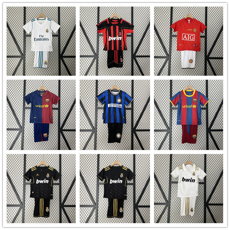 旧款复古童装球衣皇马AC国米桑托斯巴塞童装复古套装球衣