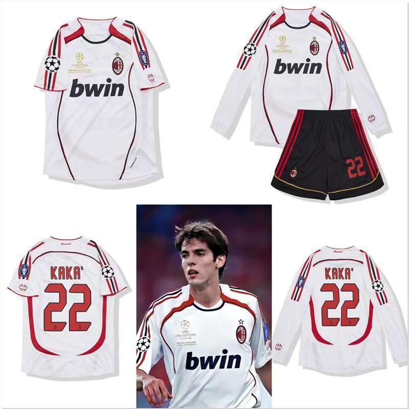 0607复古AC米兰球衣欧冠决赛版22号卡卡客场短长袖ac足球服因扎吉