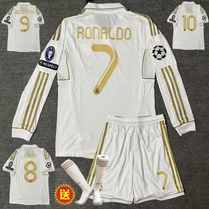 11-12皇马球衣主场欧冠版队服7号C罗短长袖足球服8号卡卡复古套装