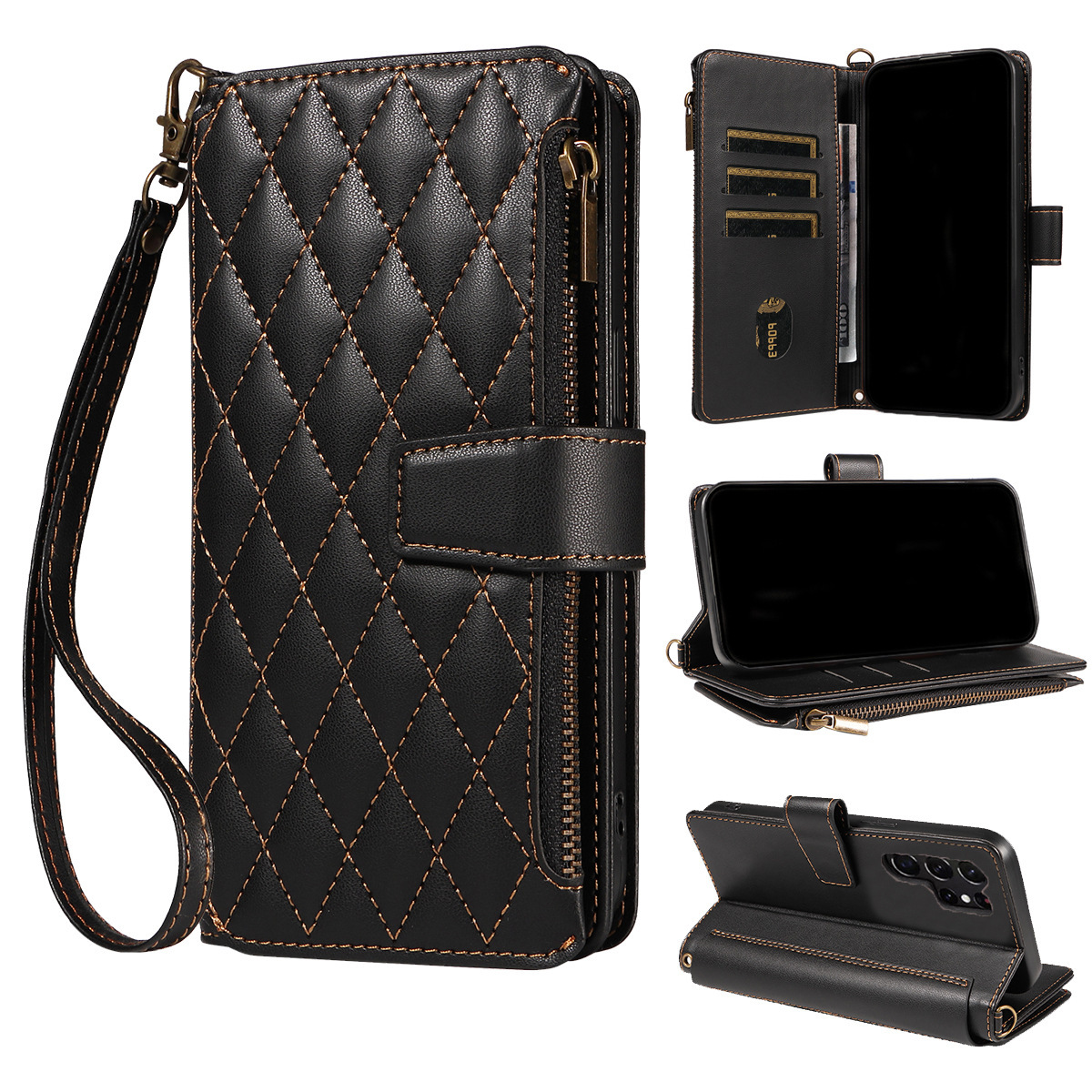 新款三星S24手机保护套NOTE9拉链插卡手机皮套S10 E带挂绳手机套