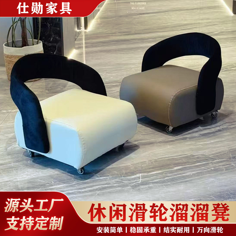 滑轮矮凳休闲溜溜凳家用小户型轻奢靠背椅儿童坐凳玄关滑轮换鞋凳