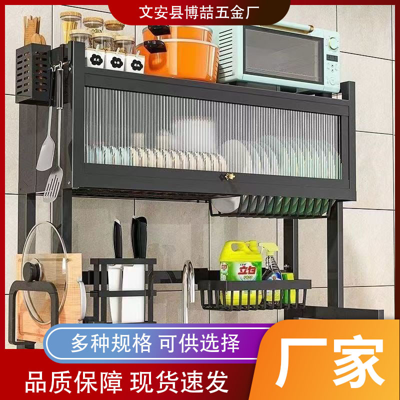 厨房碳钢置物架带门落地式收纳柜多功能碗筷盘碟储物置物柜