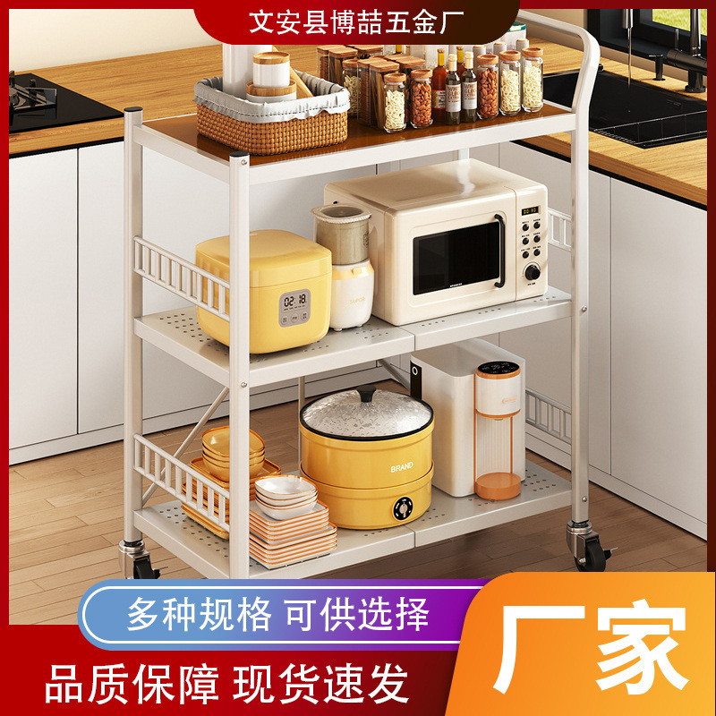 厨房置物架家用落地多层放锅碳钢收纳架微波炉烤箱客厅储物置物架