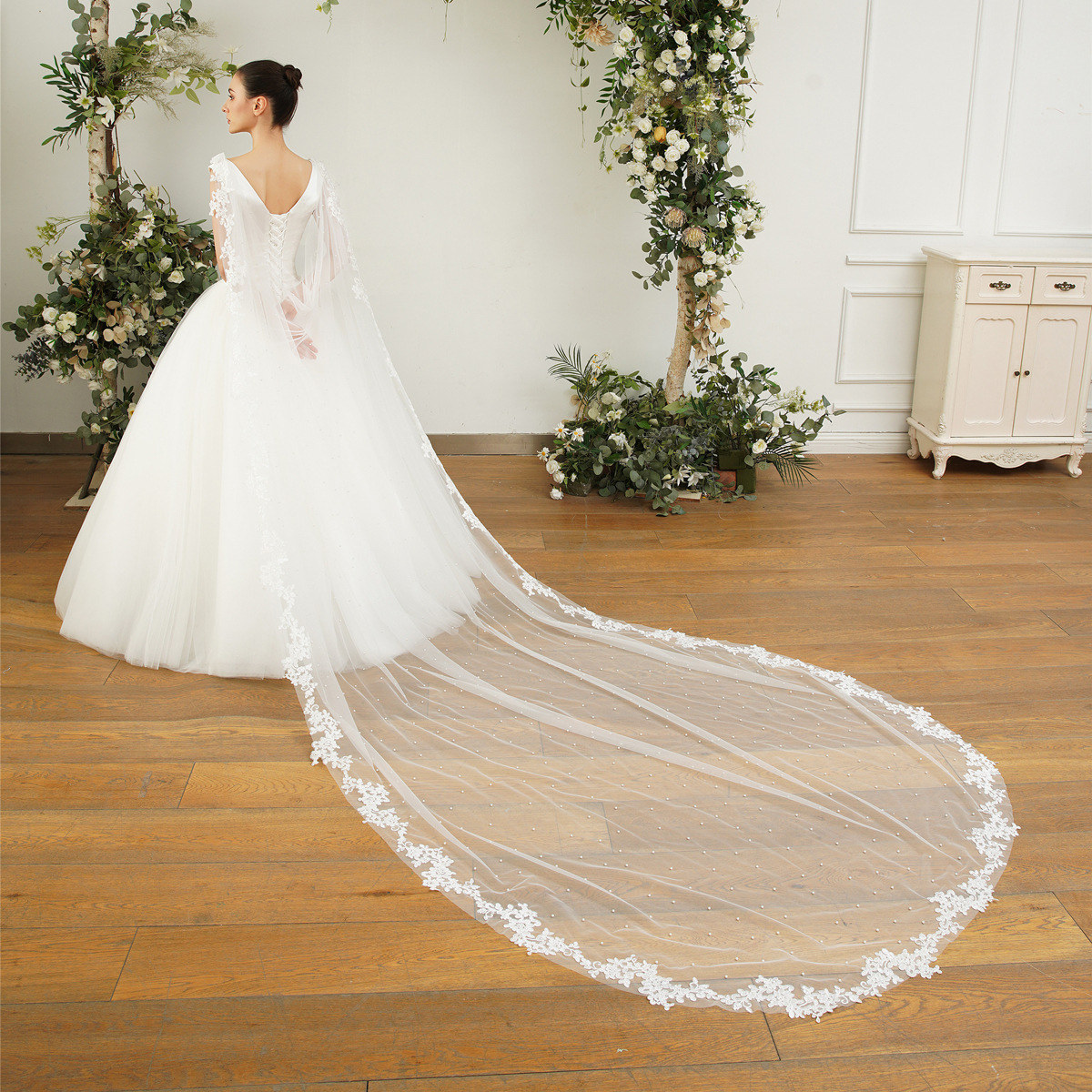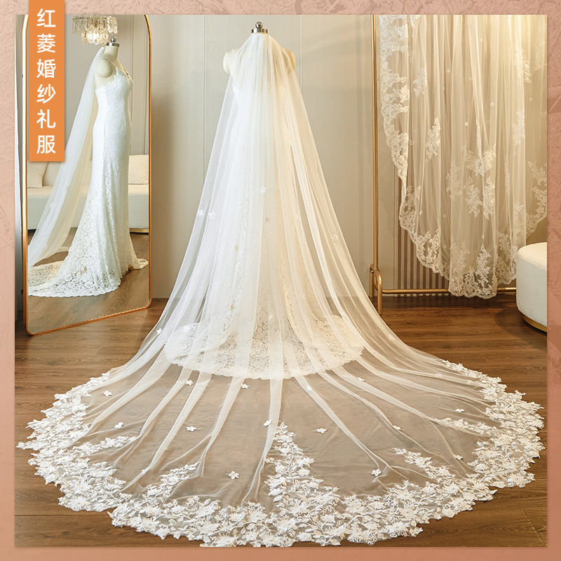 头纱新娘结婚主婚纱超长款拖尾头饰女复古超仙白色蕾丝婚礼配饰