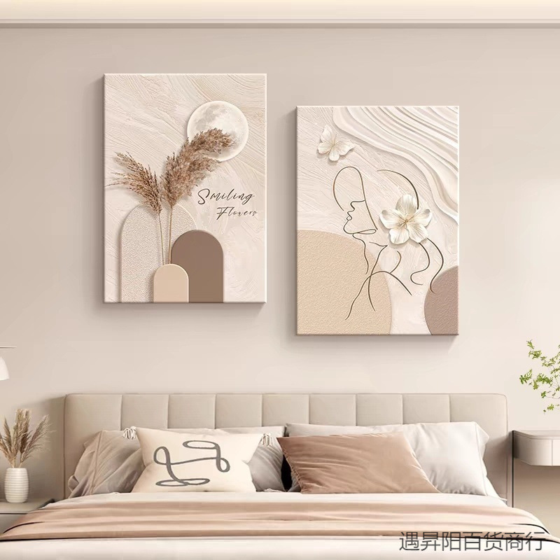 现代简约装饰画奶油风原木风温馨北欧沙发客厅挂画抽象人物挂画包