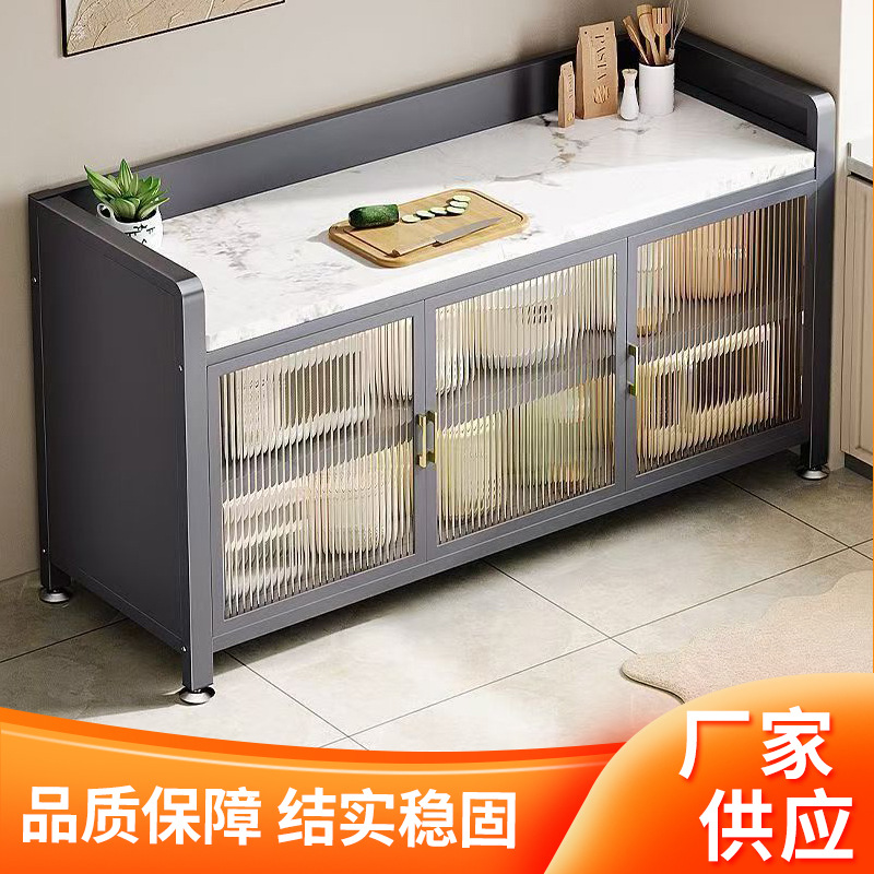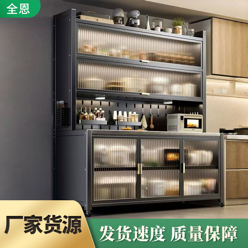 厨房置物架岩板多开柜门落地碗碟烤箱收纳柜多用途多层切菜餐边柜