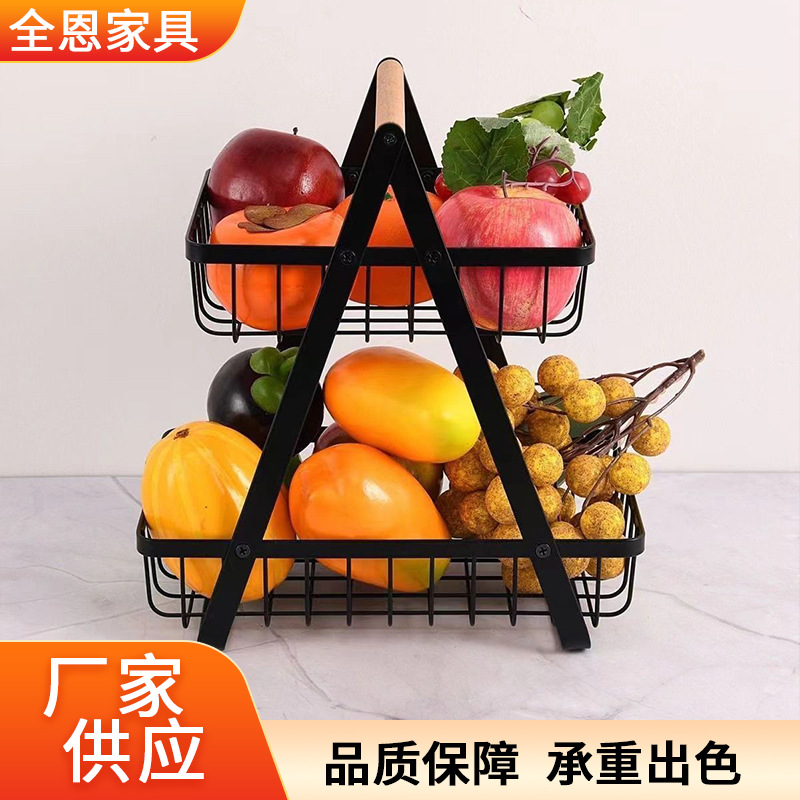 简约双层收纳篮家用厨房果蔬可沥水收纳架厂家供应便捷果蔬收纳篮