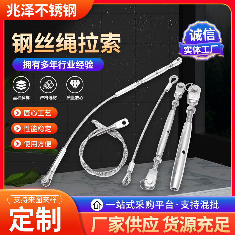 不锈钢拉索 钢丝绳拉杆锁头 不锈钢雨棚拉索保险绳桥梁拉索高强度