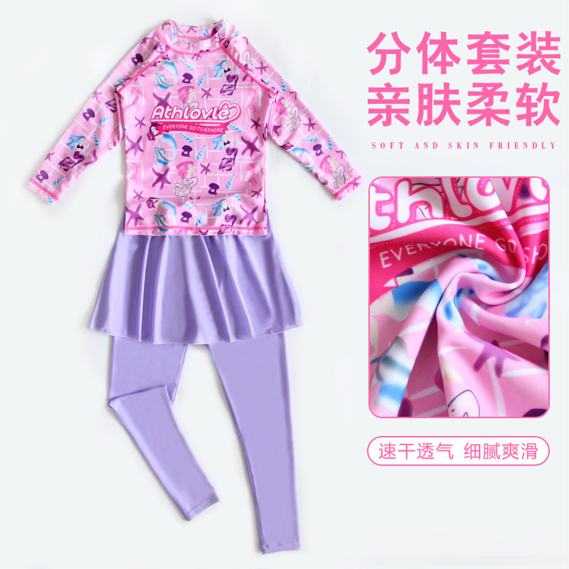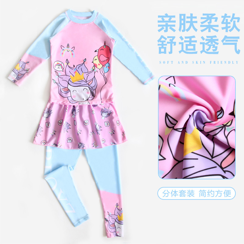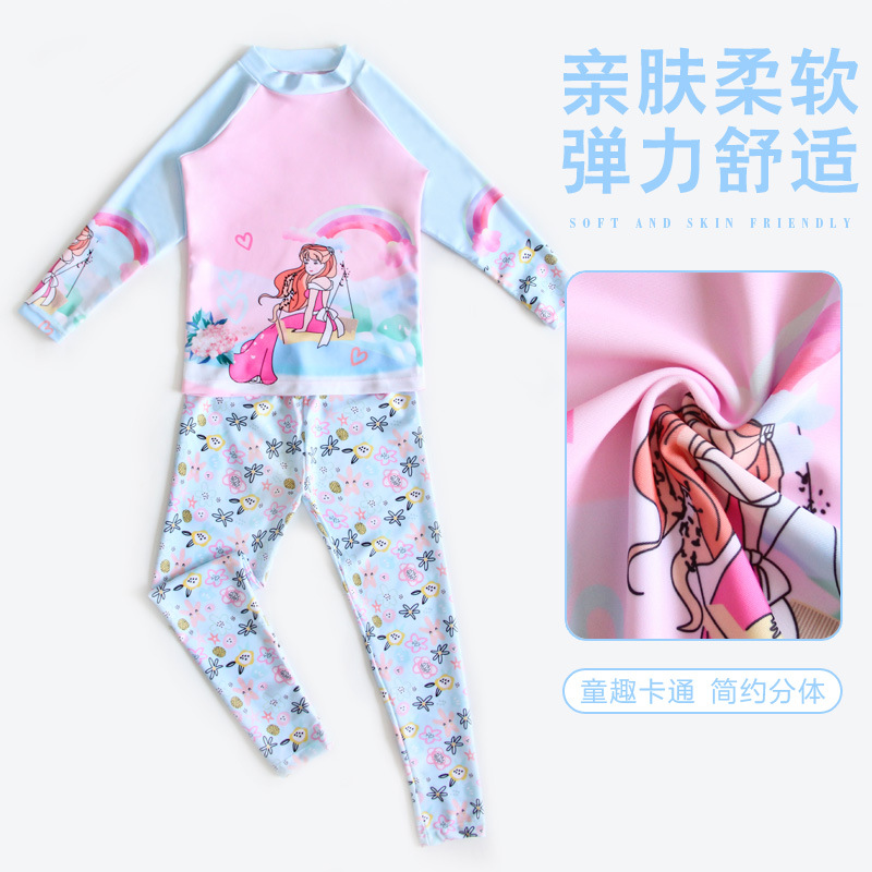儿童泳衣女孩分体长袖长裤防嗮泳装宝宝可爱冲浪服小中大童游泳衣