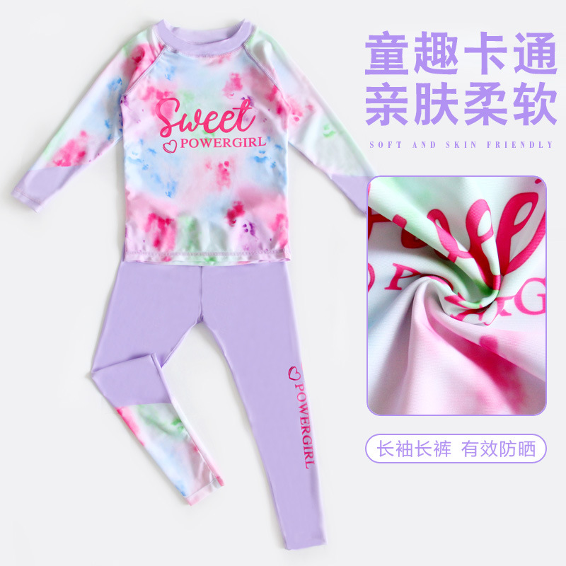 ins外贸女童长袖长裤儿童泳衣女孩潜水游泳衣沙滩冲浪服泳装潮