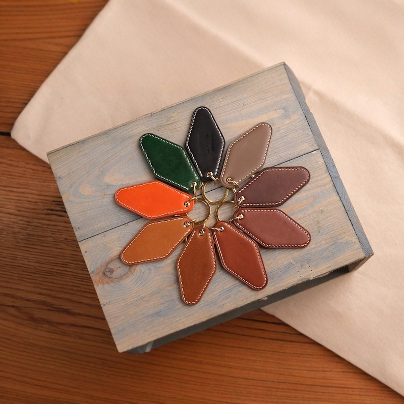 跨境teum热卖菱形吊牌钥匙挂件行李标记牌钥匙防丢皮质钥匙扣