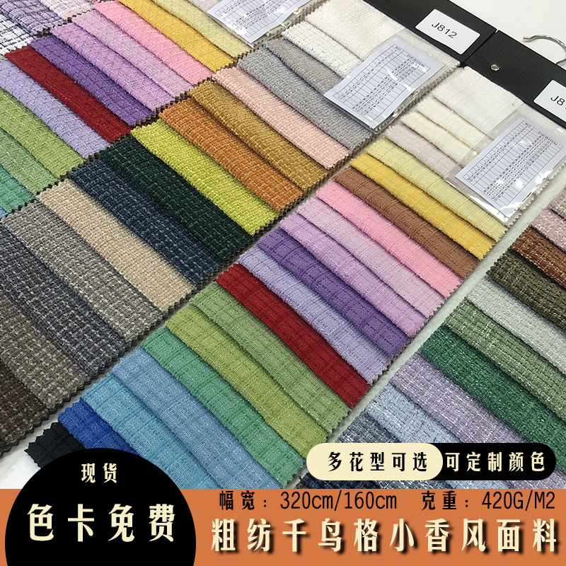 现货箱包鞋服布料粗纺布料秋冬女装布料千鸟格小香风面料