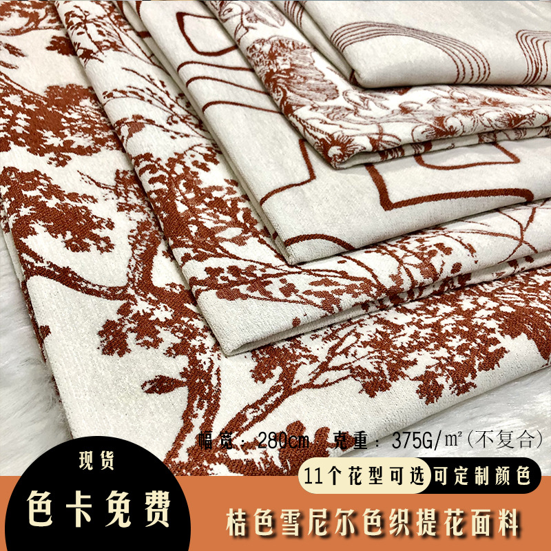 现货批发2.8米/3.2宽幅雪尼尔提花法式复古桔色抱枕箱包桌布面料
