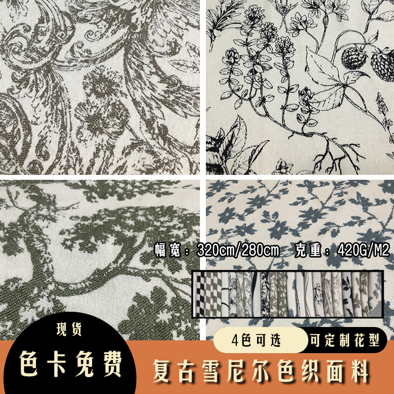 现货法式2.8/3.2米宽幅雪尼尔提花面料布沙发垫巾抱枕桌布