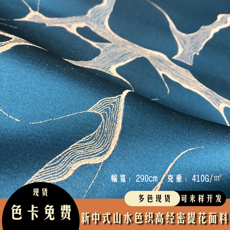 现货批发2.9米宽幅高经密轻奢提花新得大理石纹金丝浮雕提花面料