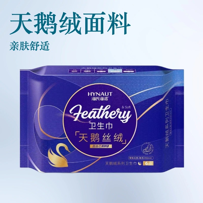 海氏海诺天鹅丝绒卫生巾夜用290mm*6片/包姨妈巾舒适透气卫生巾