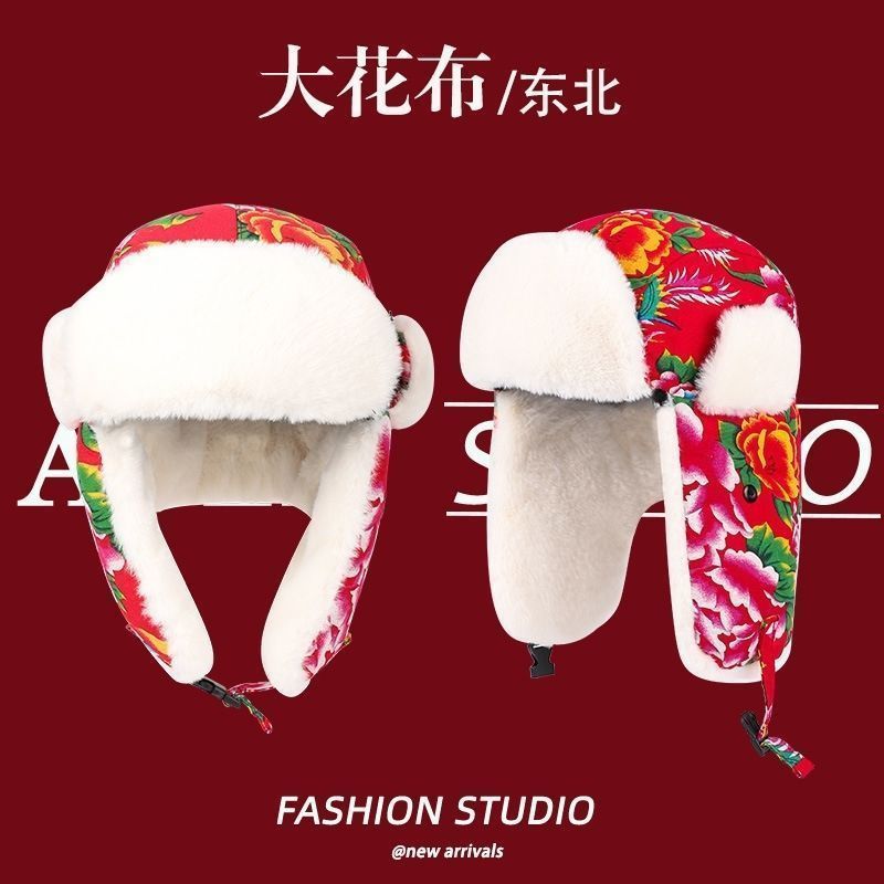 东北复古雷锋花布男女帽女冬季民族加绒加厚保暖防寒护耳帽子包邮