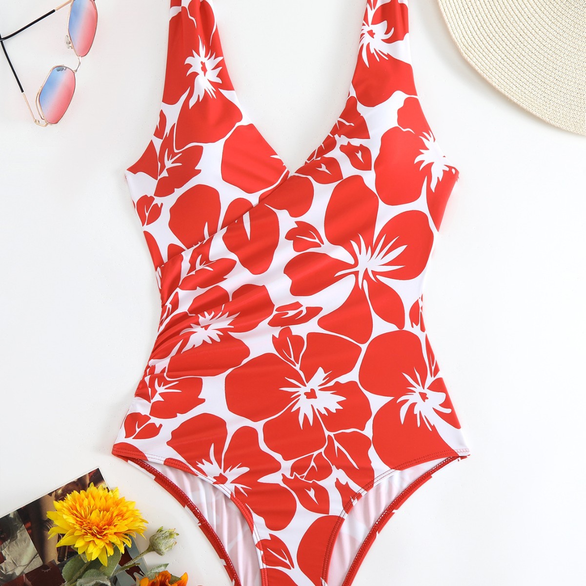 欧美热销连体泳衣女高级外贸跨V性感挂脖露背雪纺长裙沙滩泳装