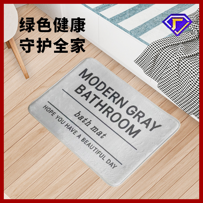 法兰绒简约地毯灰色现代简约家用小型地垫卧室客厅浴室防滑吸水垫