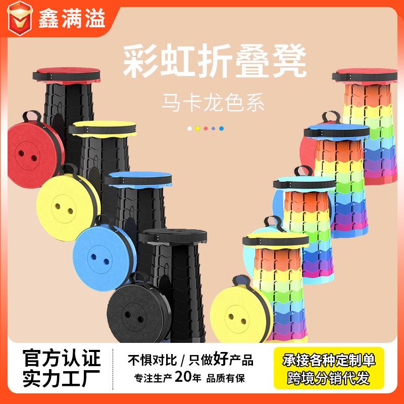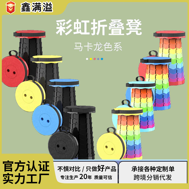 折叠伸缩凳子收纳便携排队马扎座子成人儿童户外摆地摊彩虹小板凳