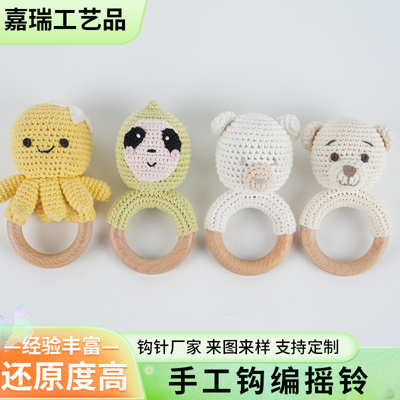 手工钩编摇铃章鱼卡通动物玩偶摇铃木制手工安抚玩具礼物