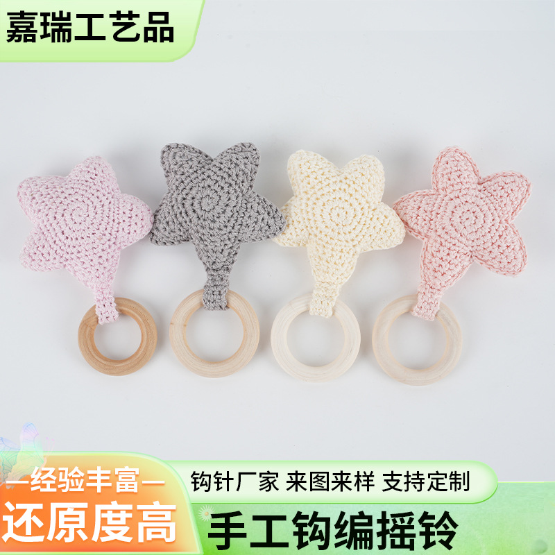 手工钩编摇铃婴儿安抚星星摇铃手工编织钩织玩偶