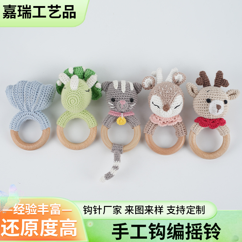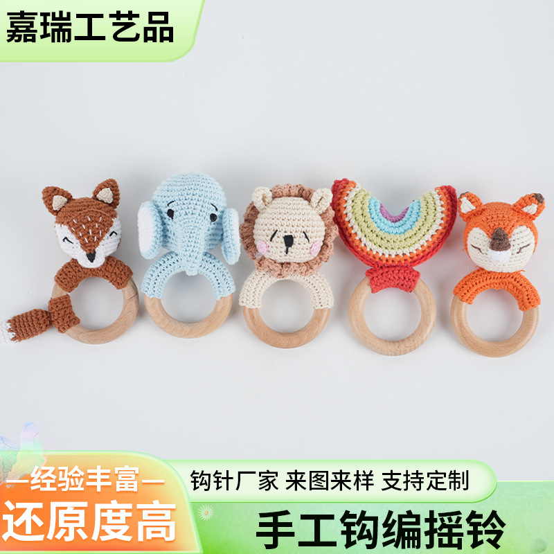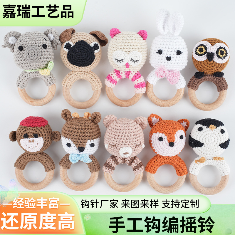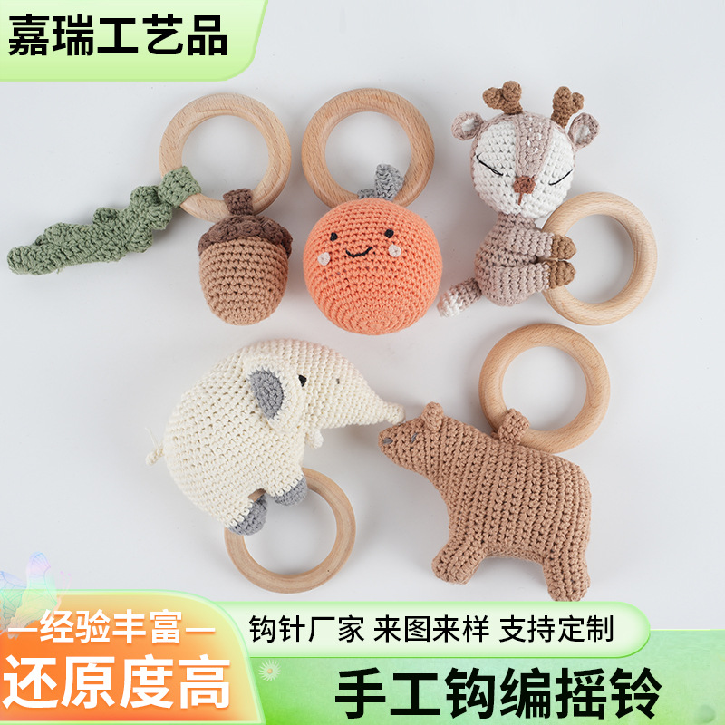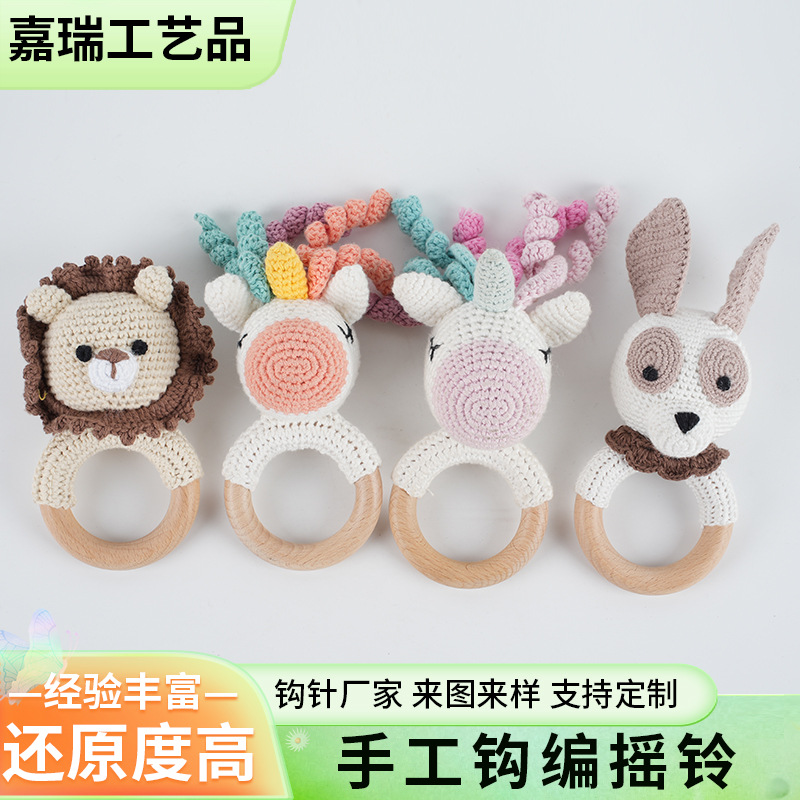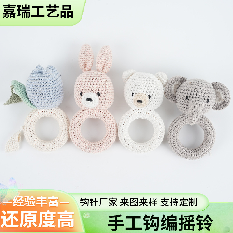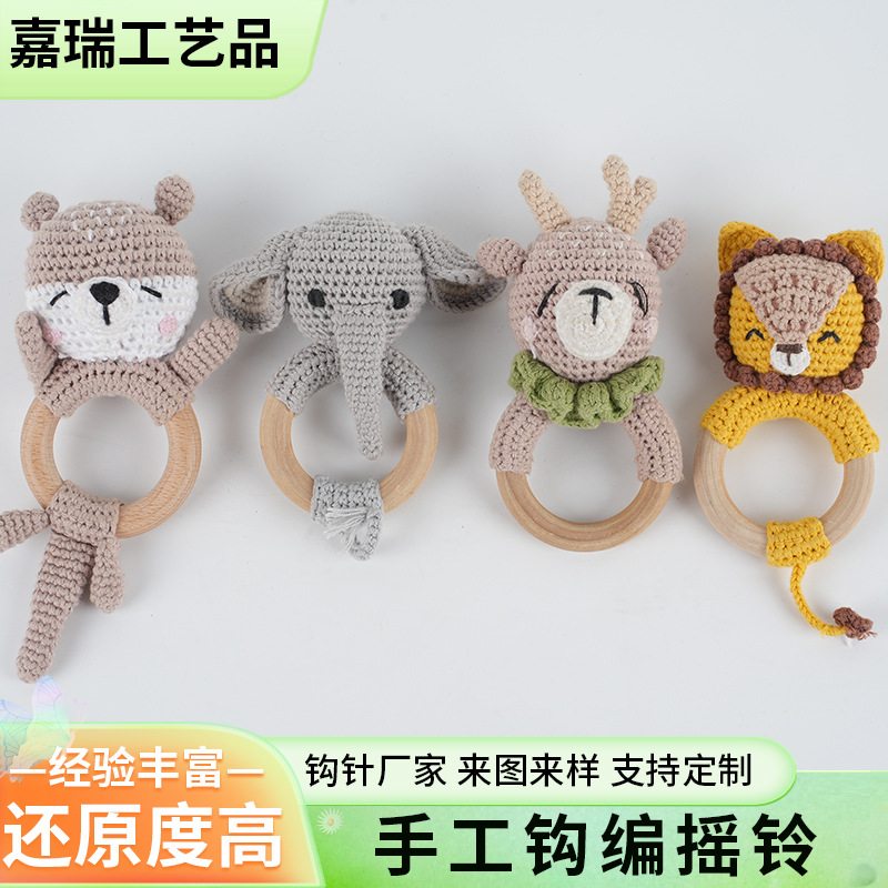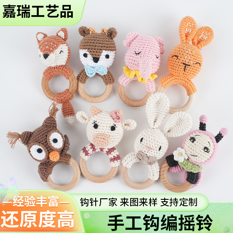 手工钩编摇铃钩针动物摇铃婴幼儿可啃咬针织玩偶安抚玩具