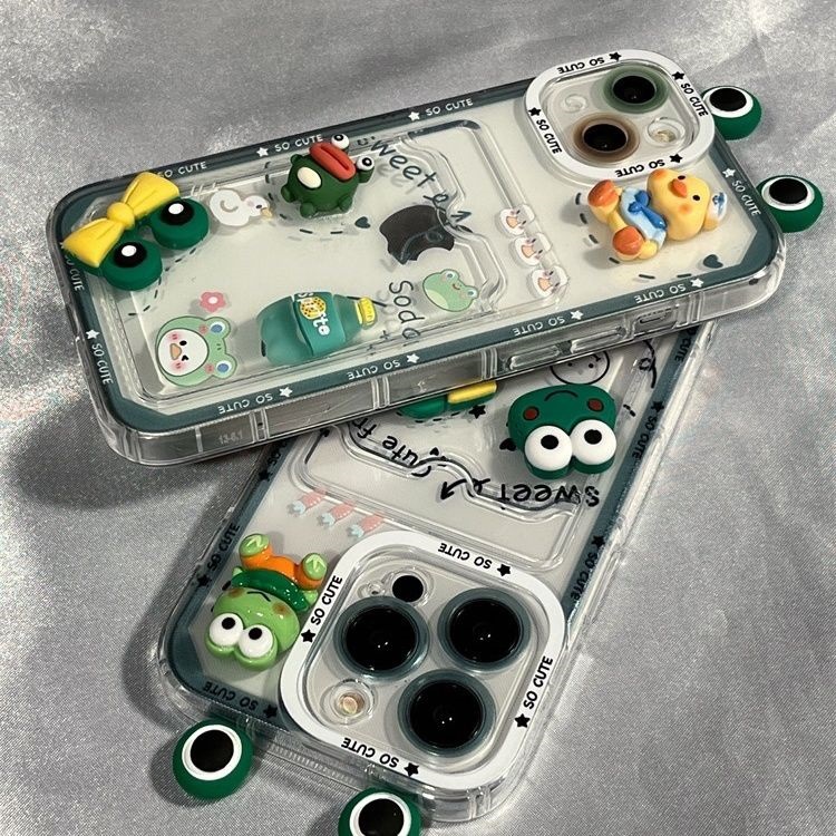 立体可爱卡通青蛙卡套iPhone15promax苹果手机壳16pro防摔14硅胶