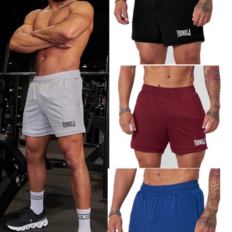 YOUNGLA新款肌肉健身运动休闲跑步蓝球撸铁沙滩裤透气印花短裤男