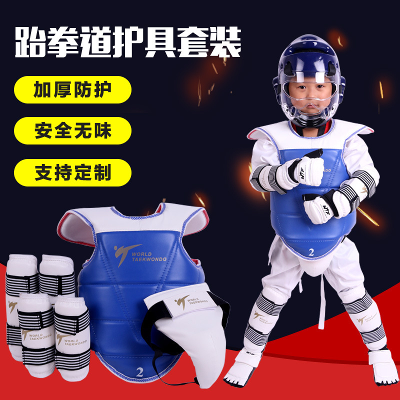 跆拳道护具加厚实战装备全套搏击护具护胸护头面罩护膝护腿护手脚