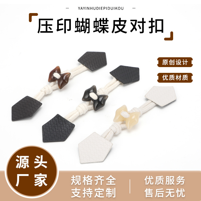 压印皮对扣蝴蝶结树脂绳扣大衣风衣毛呢外套搭扣服装辅料皮对扣