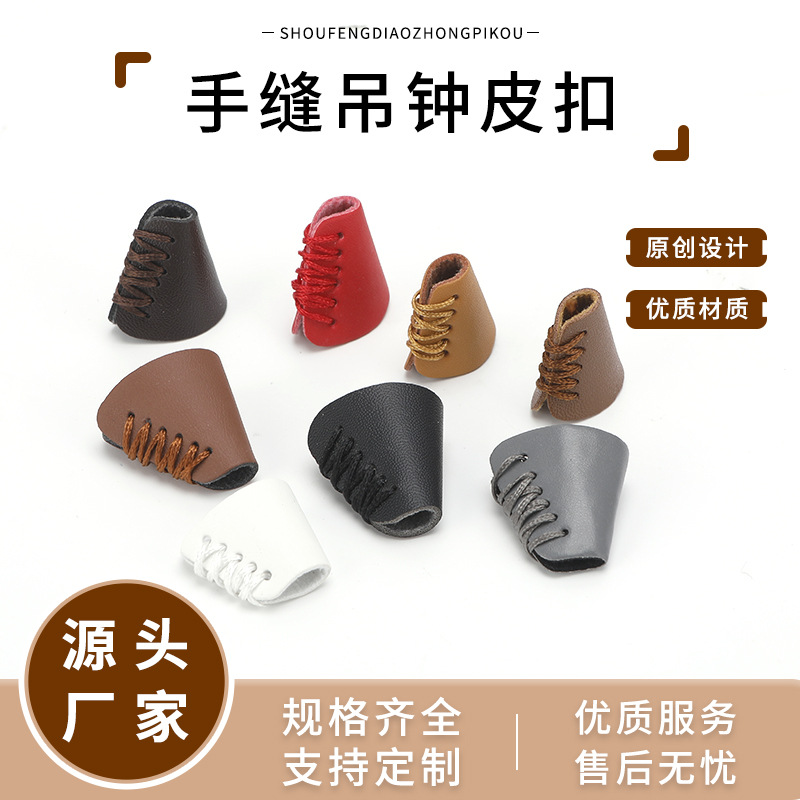 多色百搭手缝吊钟皮扣卫衣外套帽绳调节扣配件耐磨穿绳手工皮扣