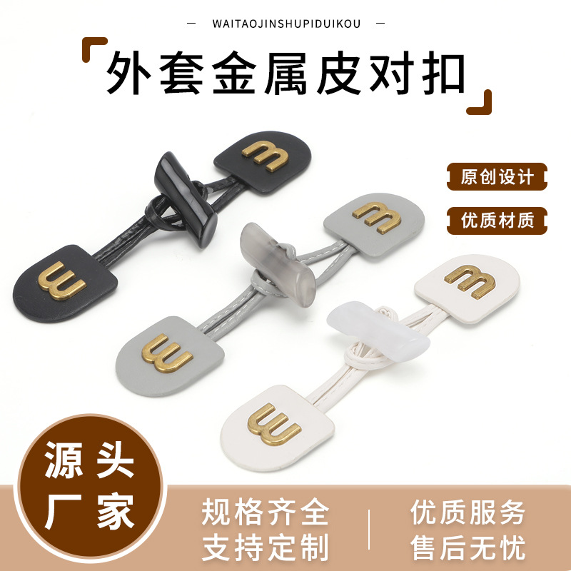 金属M字母皮对扣大衣外套牛角皮扣皮草皮衣领口袖口搭扣服装配件