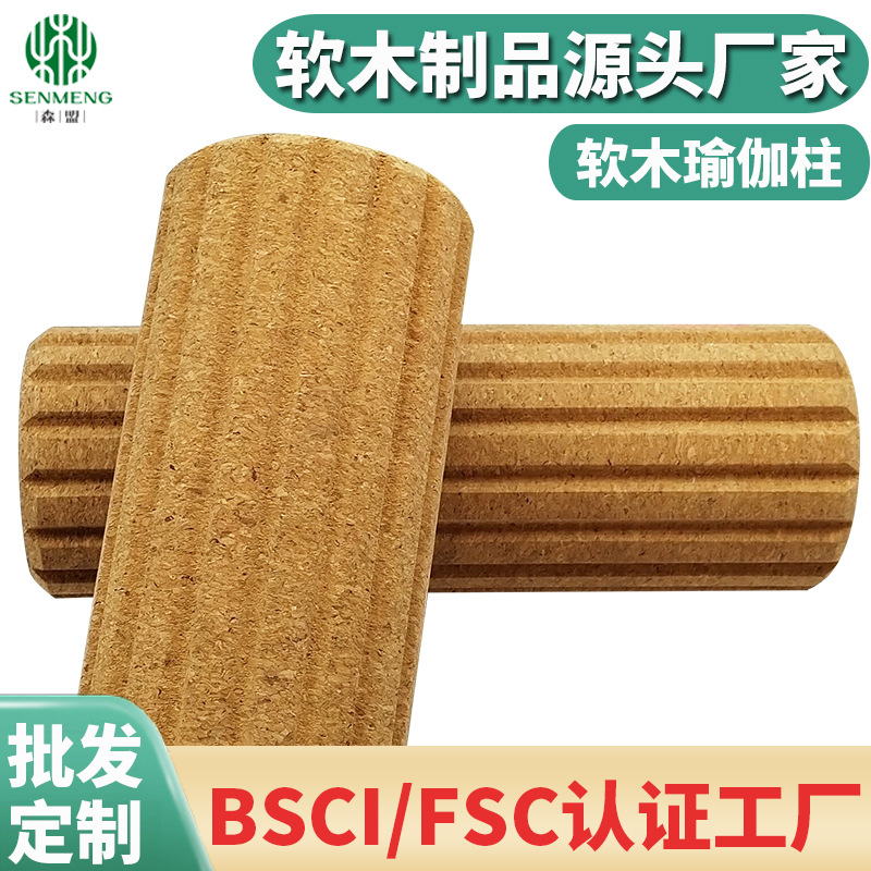 软木瑜伽柱 软木瑜伽健身按摩柱 高密度软木实心瑜伽柱30cm工厂