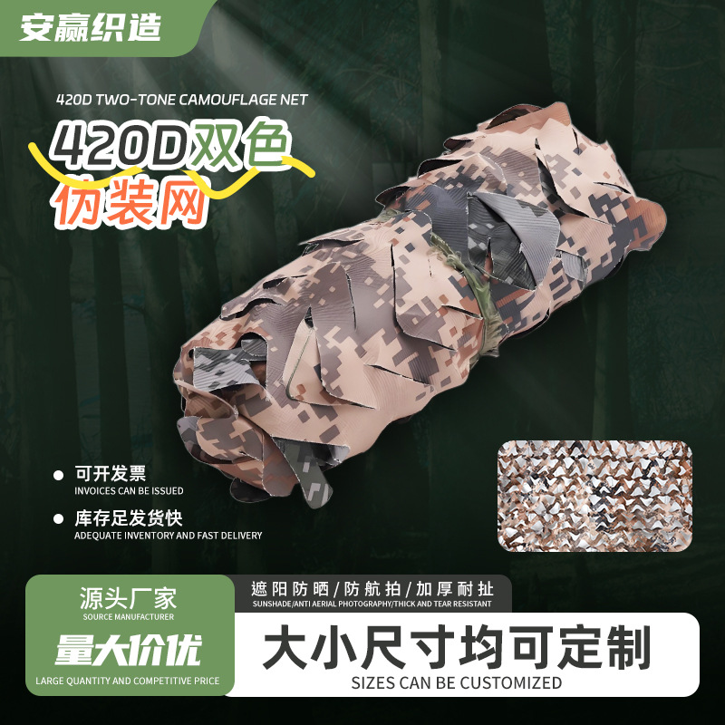 伪装网厂家定制批发丛林隐蔽荒漠双色防拍山体绿化网420D伪装网