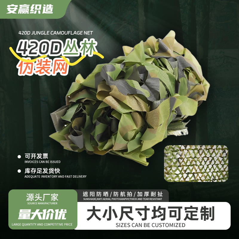 伪装网隐蔽遮挡丛林荒漠山体绿化户外阻燃绿色遮阳网420D迷彩