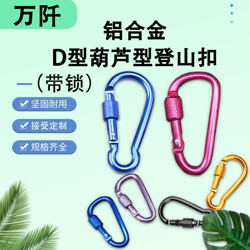 户外葫芦型铝合金登山扣带锁钥匙扣背包扣挂扣D型扣风绳扣水壶扣