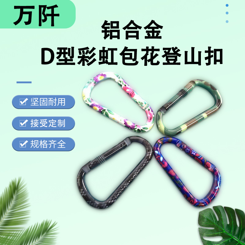 铝合金D型包花登山扣彩虹色喷漆挂钩弹簧挂钩户外野营箱包配件