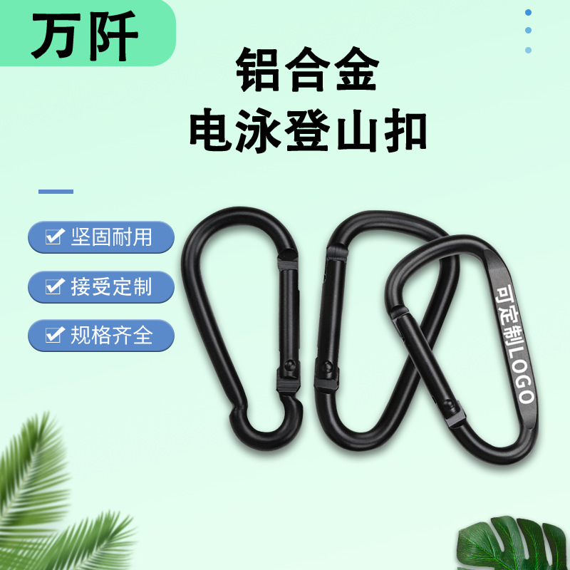 电泳黑d型铝合金登山扣户外水瓶扣全黑葫芦扣登山钩钥匙扣挂钩