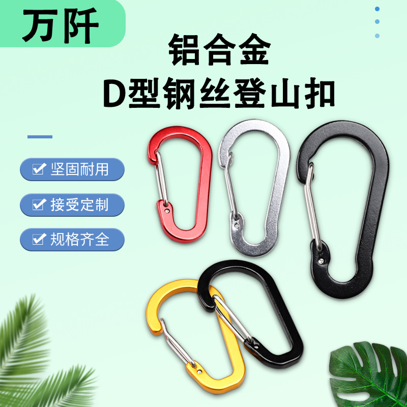 56号压扁钢丝登山扣挂钩户外多色铝合金登山钩爬山扣全扁弹簧挂扣