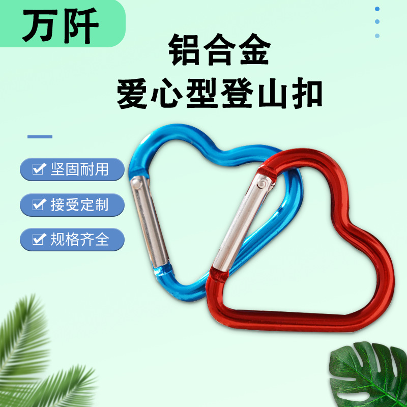 彩色铝合金爱心型登山扣户外背包爱心型挂扣服饰配件高品质铝合金