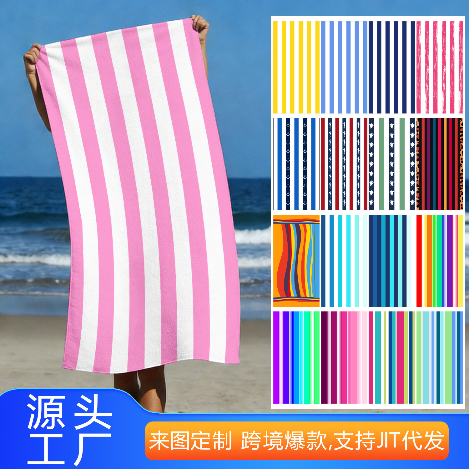 亚马逊简约条纹沙滩巾超细纤维吸水沙滩浴巾跨境条纹沙滩毛巾定制