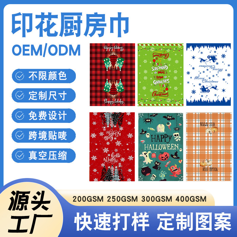 跨境来图定制超细纤维吸水厨房毛巾茶巾外贸批发布艺节日运动毛巾