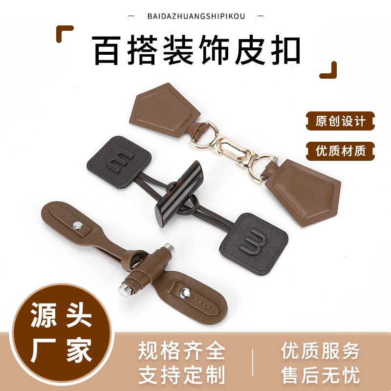 秋冬百搭女装金属皮对扣大衣风衣腰带纽扣皮草围脖对钩装饰皮搭扣