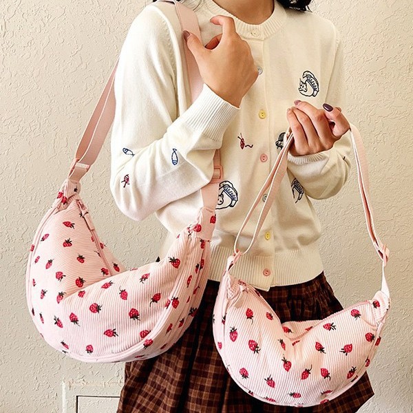 大容量新款草莓灯芯饺子包潮单肩包女 ins学生休闲百搭斜挎托特包
