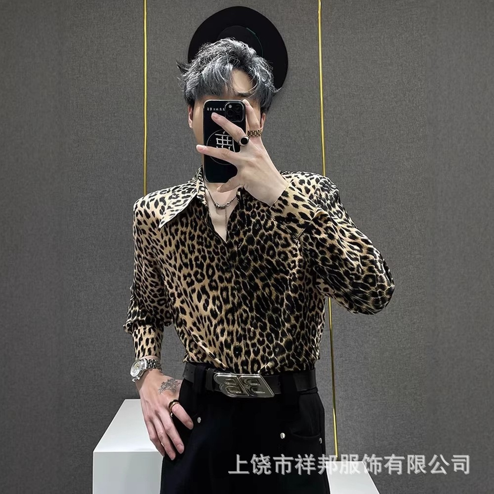 3D 印花衬衫男士ins设计感时尚美式垂感长袖花玫瑰衬衣男百搭上衣